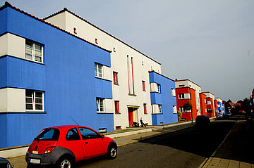 Eigentlich ist die niedersächsische Stadt Celle für ihre über 400 Fachwerkbauten berühmt, doch nicht weit vom historischen Stadtkern mit seiner pittoresken Altstadt findet man in einer Seitenstraße die Siedlung „Italienischer Garten“ des Architekten Otto Haesler, die in ihrer modernen Architektur und Farbigkeit einen spannenden Gegenpol zum historischen Fachwerk bildet.